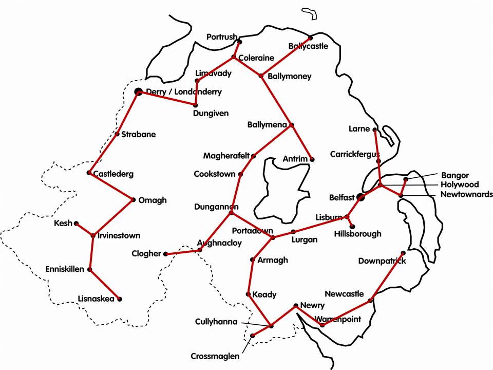 1. Vulnerability.  The system is hopelessly susceptible to failure.  An impassible problem, such as an accident or roadworks, between Cookstown and Dungannon, say, completely divides the country in two.  There are no alternative routes, no back-up links.  It won’t be just those two towns that suffer; the whole of the northwest will be cut off from the whole of the southwest.