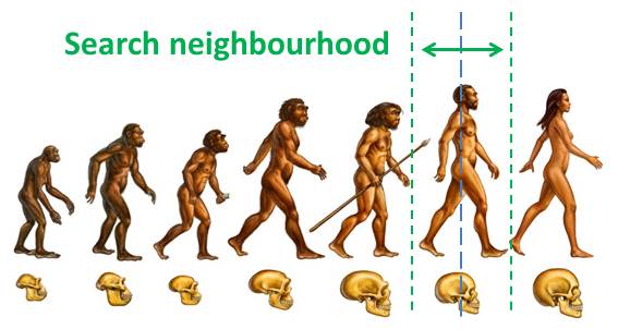 Well, it’s produced us.  And how good is that then?  We like to think that we’re the most evolved species on the planet so are we as good as it gets or could a more sophisticated algorithm have done better?  We certainly have to accept that we’re the result of a local search process so we might be only locally optimal.  We can’t be sure without analysing the underlying problem a bit more (and we don’t really know how to do that) but it’s at least possible that there might be a better solution further away in the solution space.  (What is known about certain types of local search is that they can ‘go wrong’ very early in the process; there are certain types of greedy algorithm, for example, that can be proven to produce the worst possible solution.  Food for thought?)