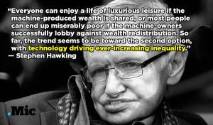 “If machines produce everything we need, the outcome will depend on how things are distributed. Everyone can enjoy a life of luxurious leisure if the machine-produced wealth is shared, or most people can end up miserably poor if the machine-owners successfully lobby against wealth redistribution. So far, the trend seems to be toward the second option, with technology driving ever-increasing inequality.“