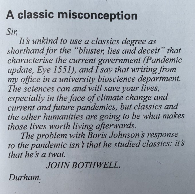 So, yes, there’s a need for thinking beyond the scientific. Bothwell’s Classics is clearly too narrow although his Humanities is better. Creative is general in a sense but limiting in another. Bearing in mind the common division of academic faculties into ‘Technology’ and ‘Arts’ (and we’ve already got Technology), perhaps Arts is simplest and best?