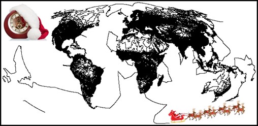 We all know the problem well enough … Father Christmas has to travel around the world, visiting all the good girls and boys, in a single night, and return to where he started at the North Pole. Sounds like a tall order! Can it be done?